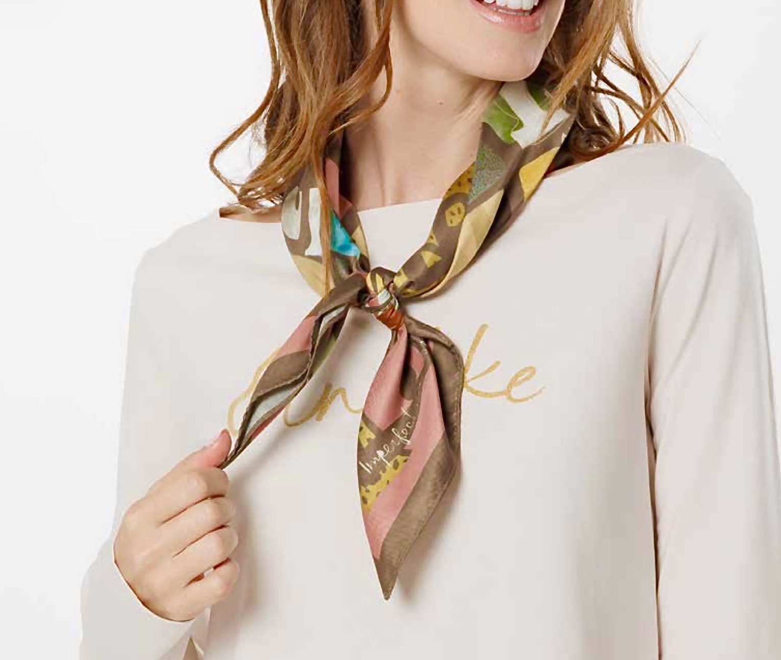 Anekke színes kendő. Ez a modell az Anekke 2026-os kollekciójának része, melynek tematikája a sokszínű görög kultúra köré épül.