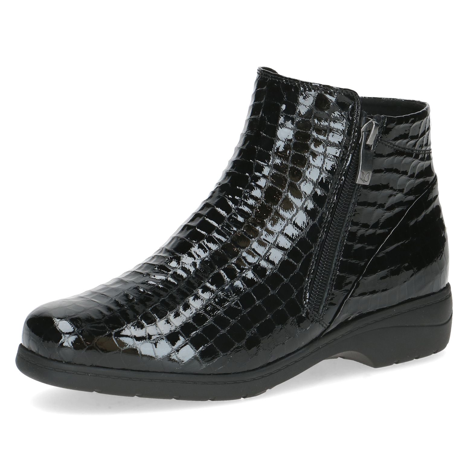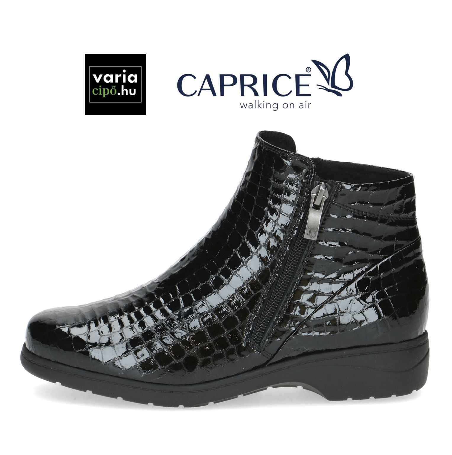 Caprice fekete lakk bokacipő, H- szélességgel és dupla cipzárral