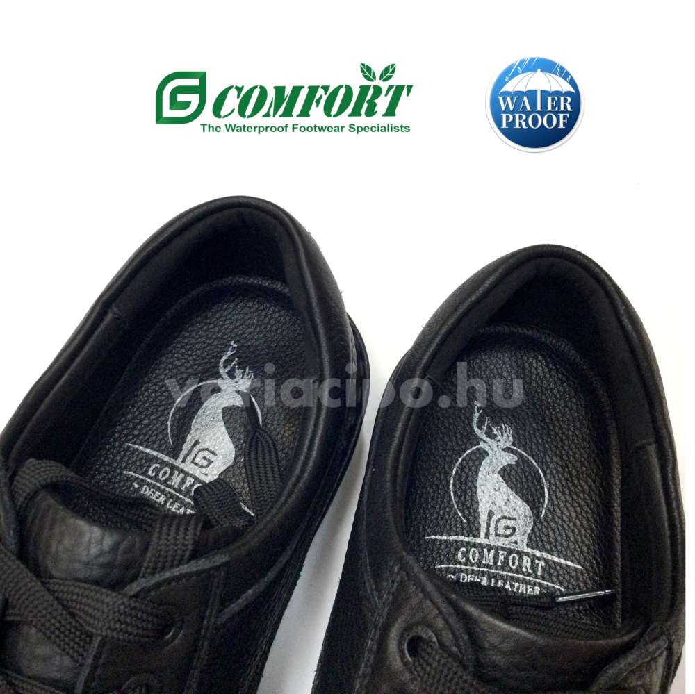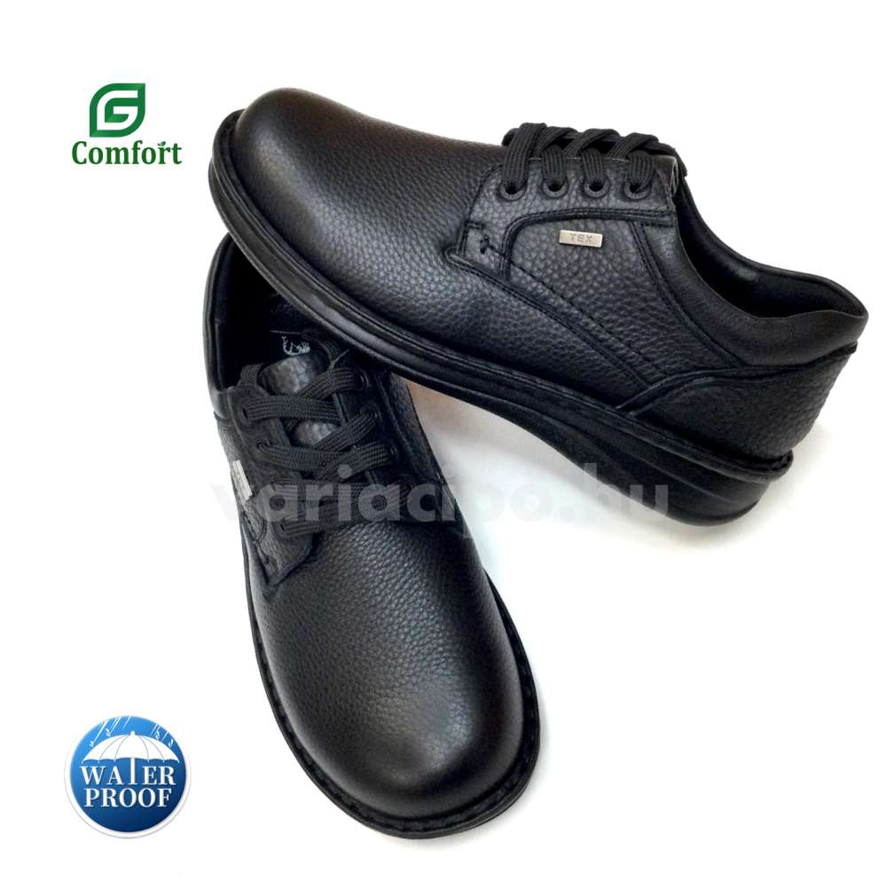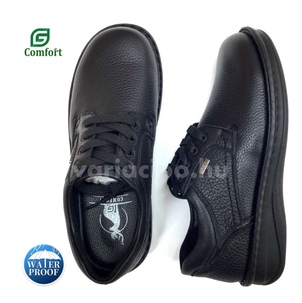 Extra széles G-Comfort cipő fekete színben. Prémium minőségű szarvasbőr felsőrésszel készült férfi utcai cipő, mely a különösen érzékeny lábra is kitűnő választás. Ortopédiai K-szélesség, kivehető talpbetét, puha párnázottság és csúszásmentes talp fokozza a modell kényelmét.