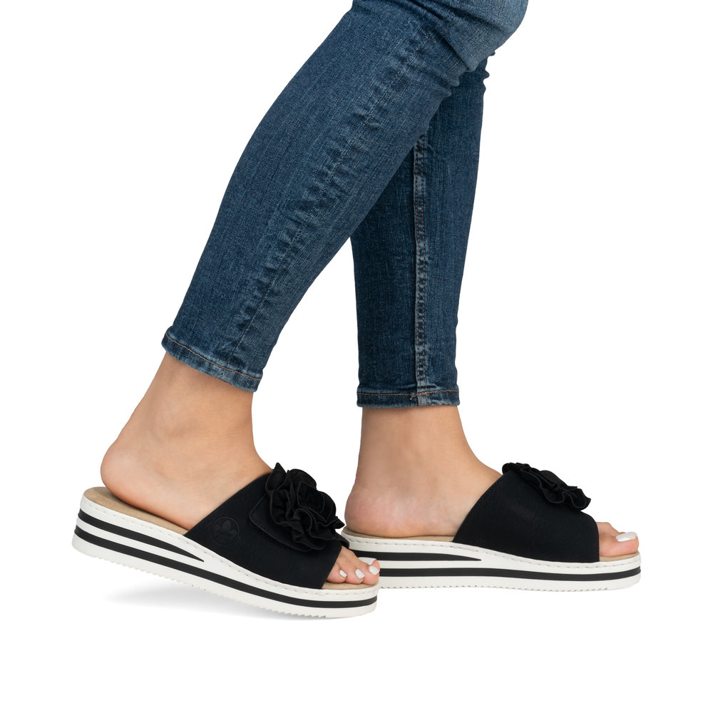 Fekete Rieker női papucs állítható, tépőzáras pánttal.