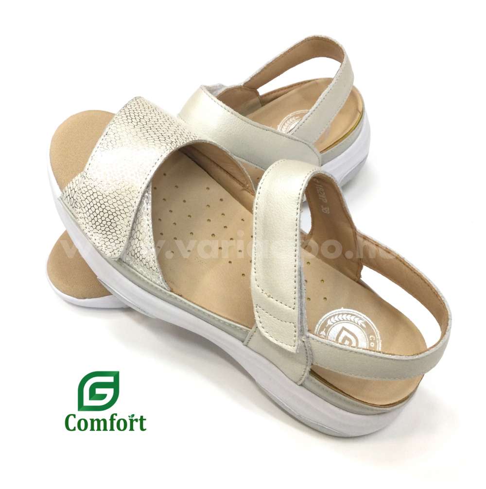 G-Comfort tépőzáras szandál kombinált gyöngyház-fehér felsőrésszel, tépőzáras, állítható pántokkal. Kiváló minőségű bőrből készült anatómiai cipő. Felső része puha, rugalmas kidolgozású, könnyedén illeszthető az érzékeny lábhoz is! Normál-komfort szélesség, kivehető HD talpbetét és ultra könnyű súly jellemzi a modellt.