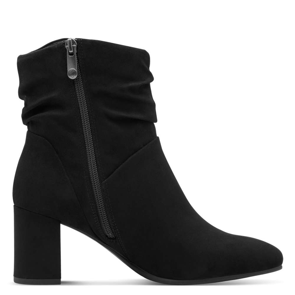 Magas sarkú női bokacsizma textil felsőrésszel a MARCO TOZZI őszi kollekciójából!  Kényelmét “FEEL ME” memóriahabos talpbetét fokozza.