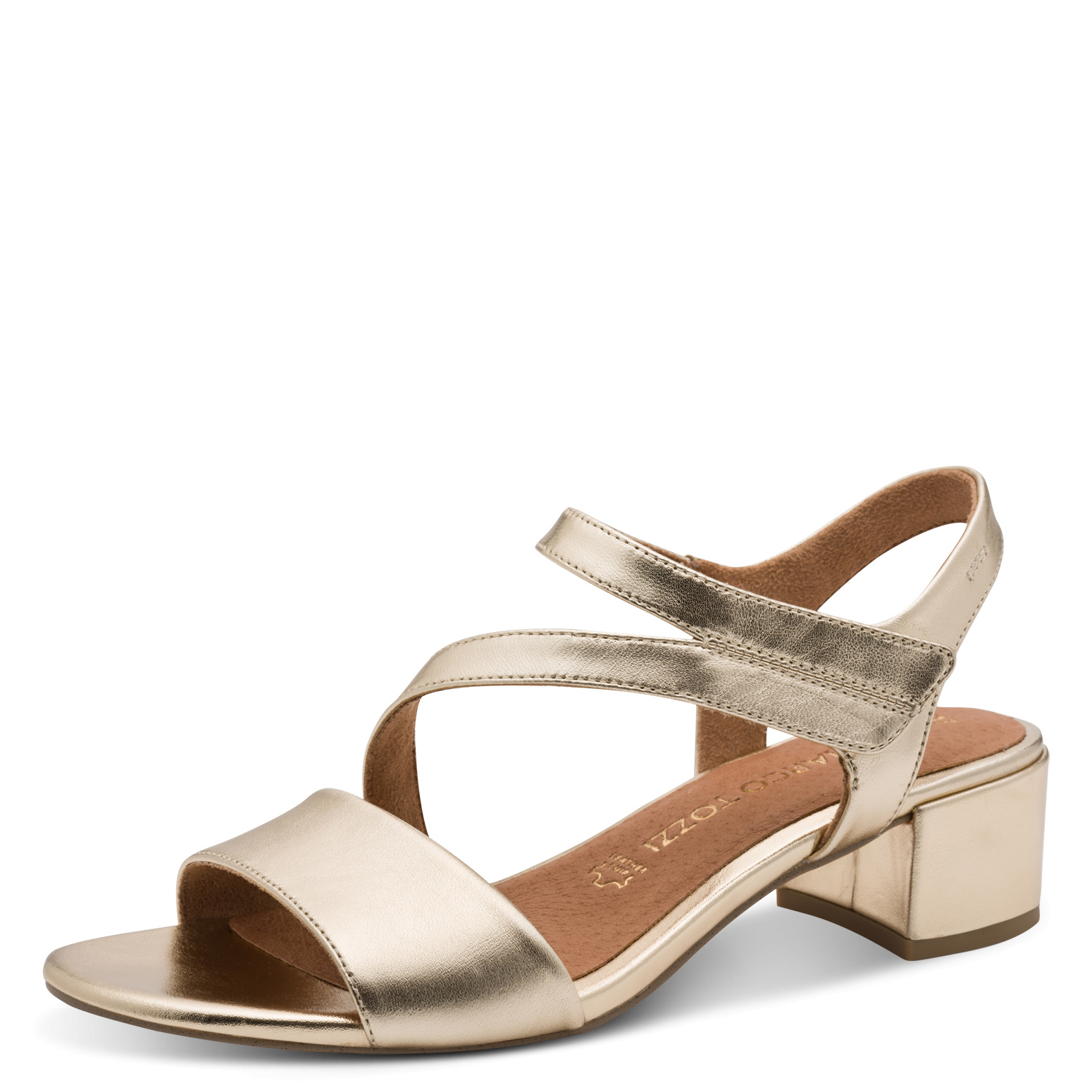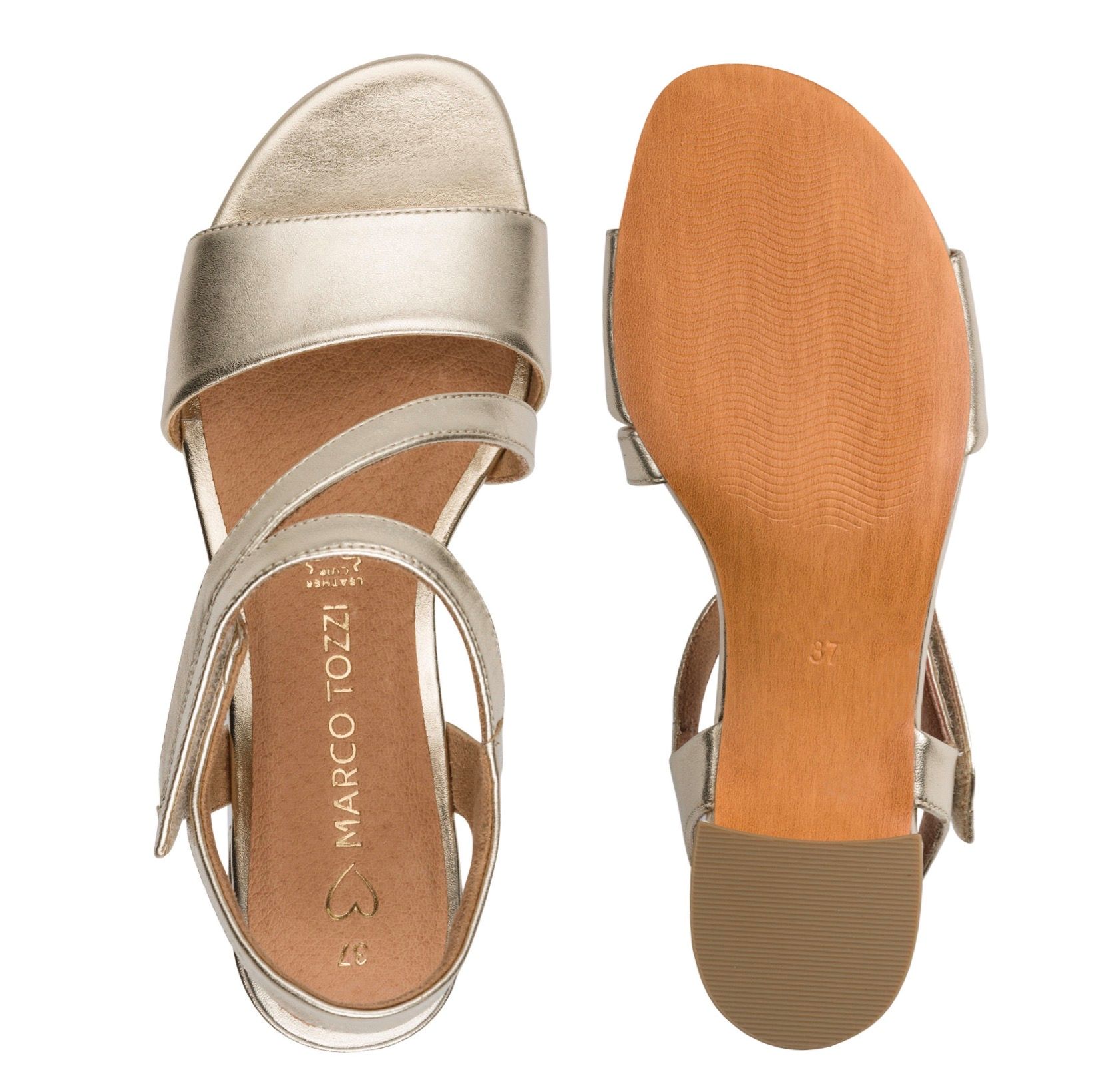 Marco Tozzi szandál arany színű, bőr felsőrésszel