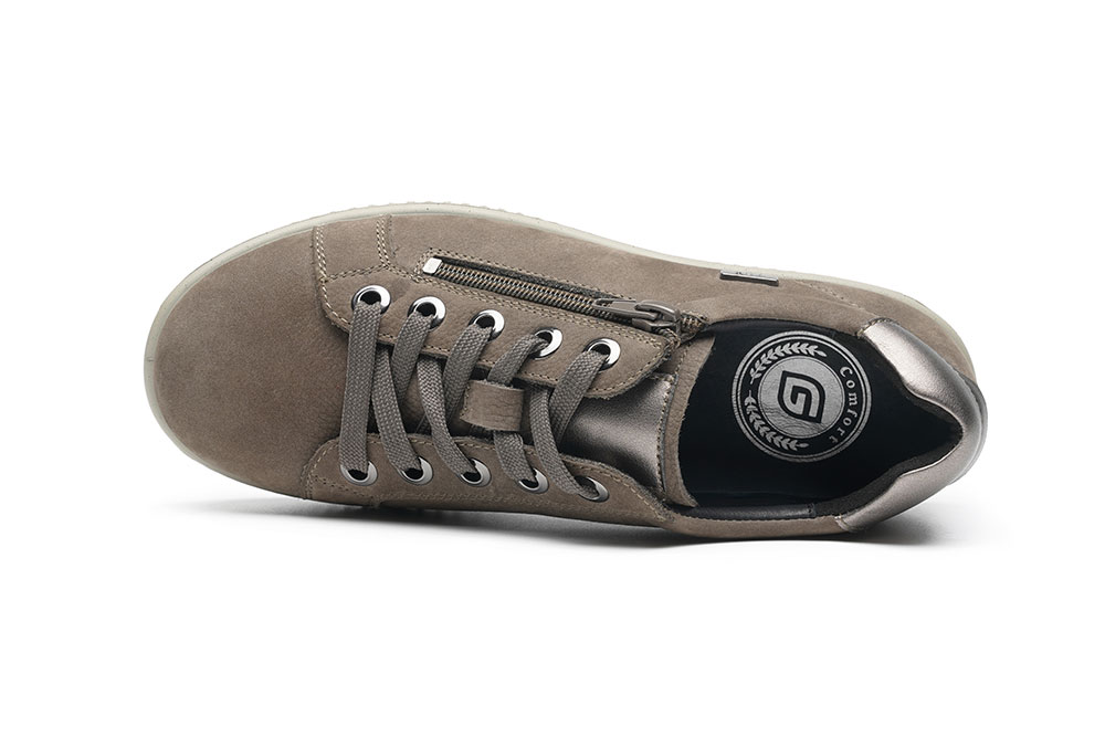Szürke G-Comfort vízálló sneaker bőr felsőrésszel. Kiváló minőségű nubuck bőrből készült felsőrésze puha kidolgozású, könnyedén illeszkedik az érzékeny lábhoz is! H-szélesség, kivehető HD talpbetét, csúszásmentes talp fokozza a modell kényelmét. A lábhoz való illeszkedést és a cipő felhúzását funkcionális cipzár és fűzők segítik.