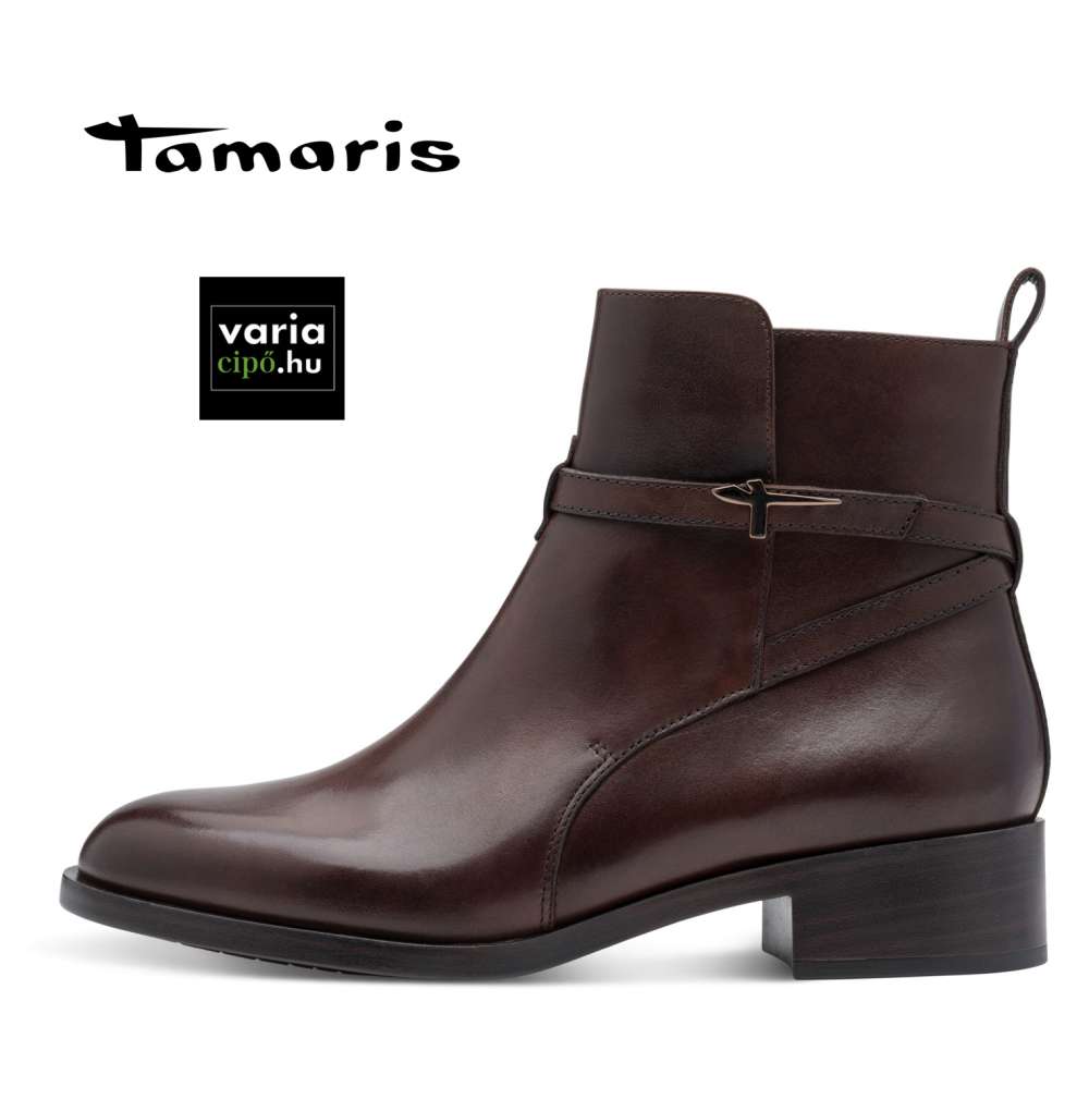 Tamaris sötétbarna bokacsizma bőr felsőrésszel. Klasszikus, elegáns Tamaris modell kényelmes sarokkal. Belsejében ” Touch-it” memóriahabos talpbetét gondoskodik az egész napos kényelemről. További kényelmi extra: TAMARIS ANTISLIDE